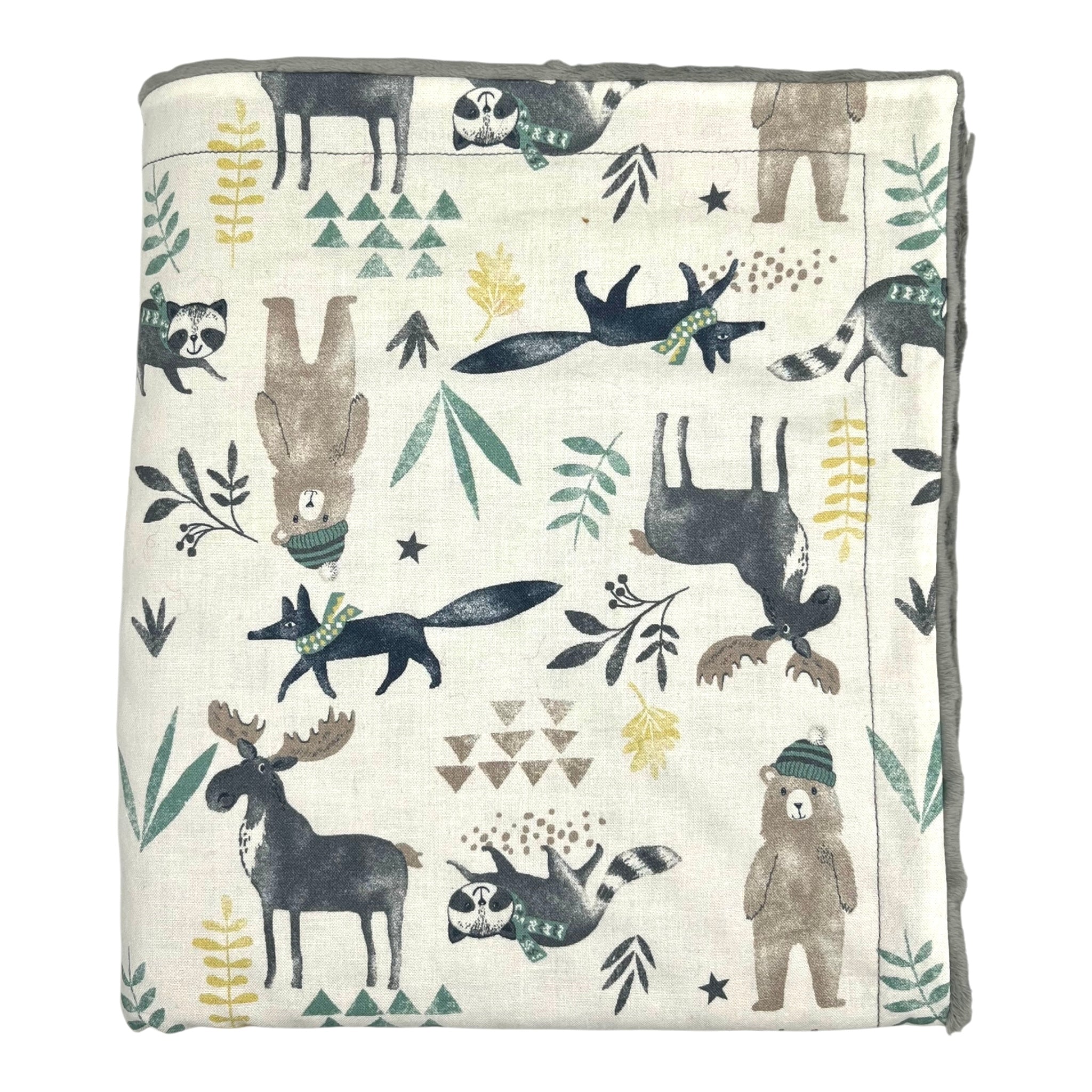 This Blanket by Mimi's Little Loveys features a collection of Maine critters: bears, cardinals, deer, moose, owls, porcupines, raccoons, squirrels, all on a white background. The back is an ultra-soft, dimple-dot minky that your little one is sure to love. Choose from our oversized Stroller Blanket, measuring approximately 42 x 40 inches, or our smaller Cuddle Blanket, measuring approximately 30 x 30 inches. Please indicate which size you would like when ordering, and your blanket will be custom made for you.